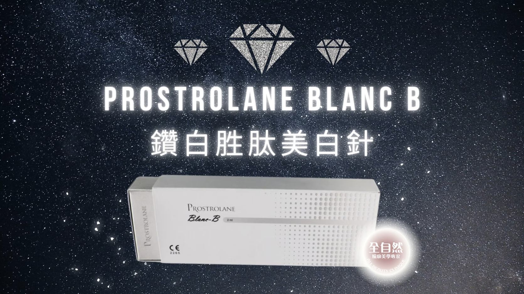 PROSTROLANE BLANC B 鑽白胜肽美白針以革命性針對黑色素的專利「彷生胜肽」技術,以四種專利胜肽 (寡肽-92、八肽 11、阿魏酰寡肽-33、Valprooyl 寡肽-33),透過透明質酸為媒介,讓胜肽美白養份深入真皮層,從而改善因光導致皮膚暗啞及老化問題,同時為肌膚補充營養,達至均勻膚色,去黃暗啞,回復光澤及亮白效果。